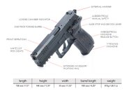 FEATURES-4.25" forged barrel-Hard coat anodized 7075 aluminum frame-Nitrocarburized steel slide-Front cocking serrations-Extended Picatinny accessory rail-External hammer-Slide stop & decock lever-Loaded chamber indicator-Disassembly lever-Ambidextrous manual safety & magazine release button-17 round magazine-7.5" overall length