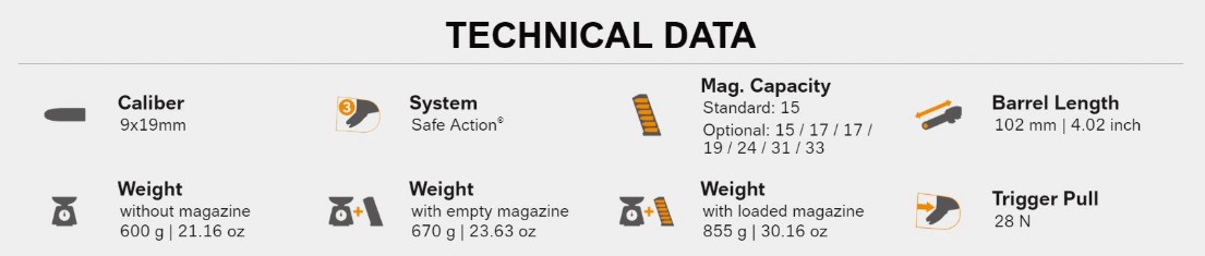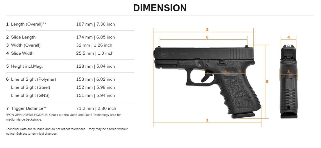 The GLOCK 19 in 9 mm Luger is ideal for a versatile role thanks to its reduced dimensions when compared to the standard sized option. In addition to its use as a conventional service pistol, it is ideal for use as a backup weapon or for concealed carry purpose.