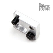 New Frontier Armory’s M-16 Drilling Jig is made for properly aligning and drilling the third hole for a full auto sear in an AR-15 style lower receiver. The drill hole is reinforced with a steel drill bushing to prevent wear and be able to use the jig over and over without any issues with tolerance. The jig and pins are made to exact tolerances. Be sure of proper fitment in your lower by reaming the rear take down pin hole to .250 and the safety selector hole to .375 which will ensure an accurate drilling of the 3rd hole.